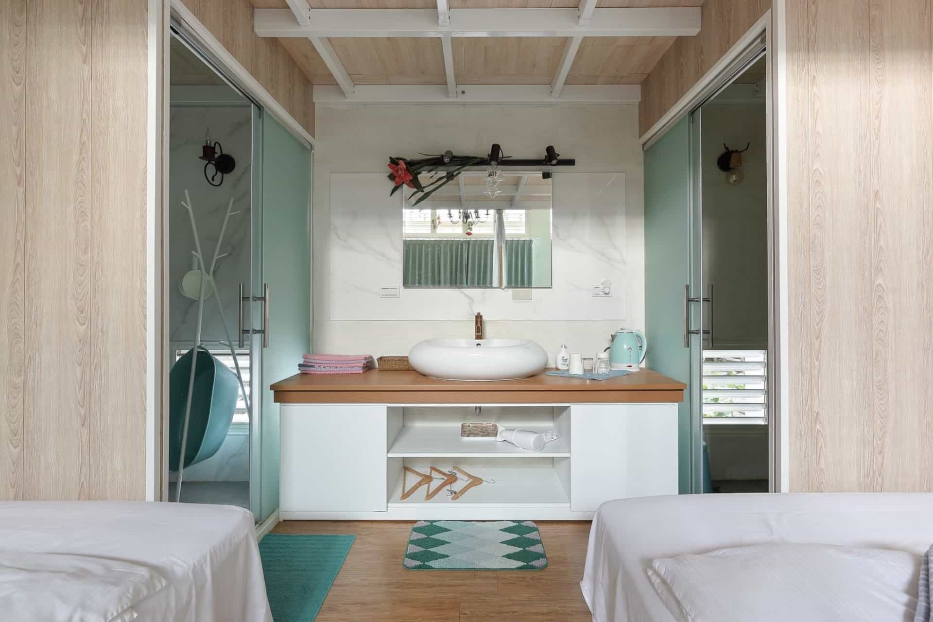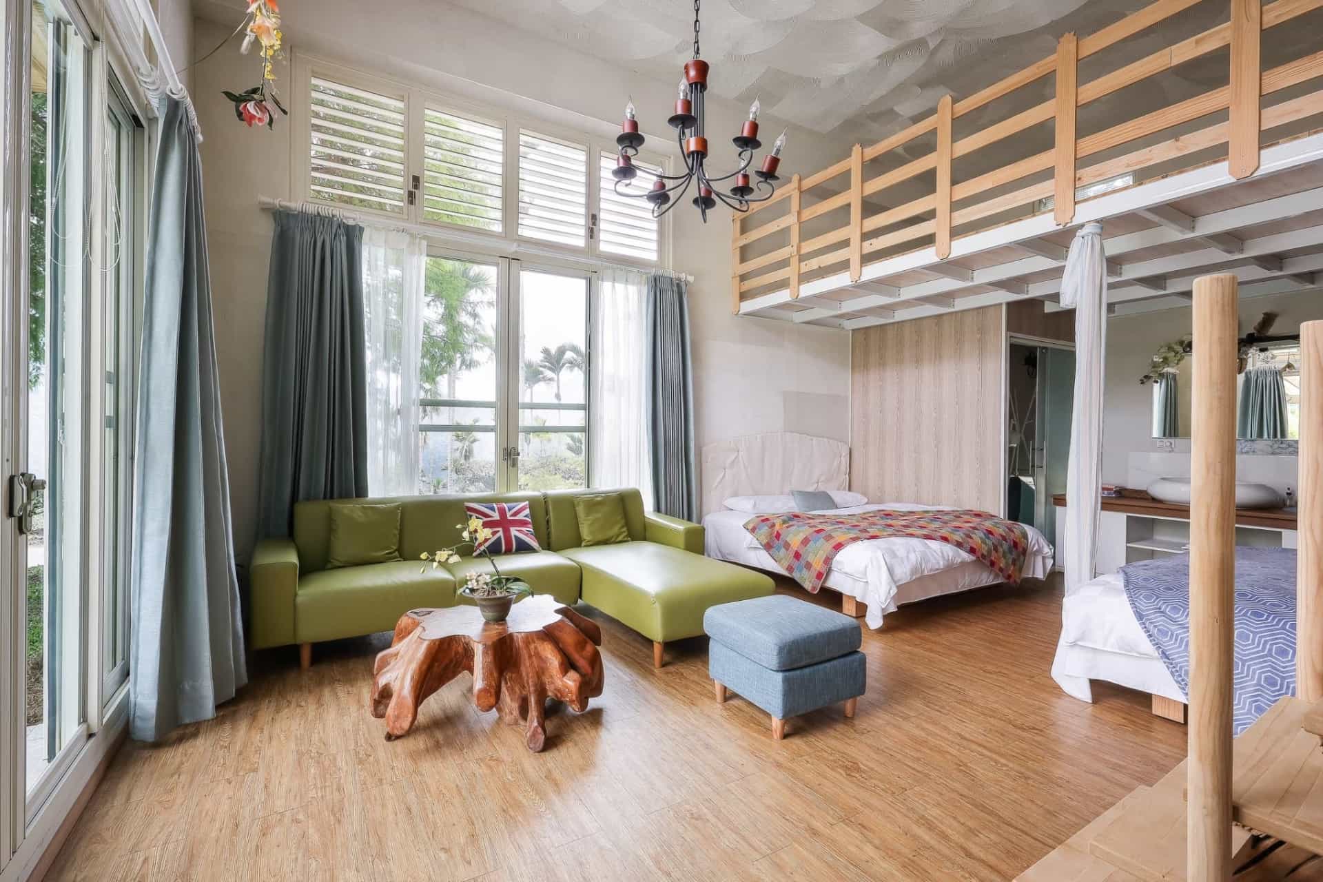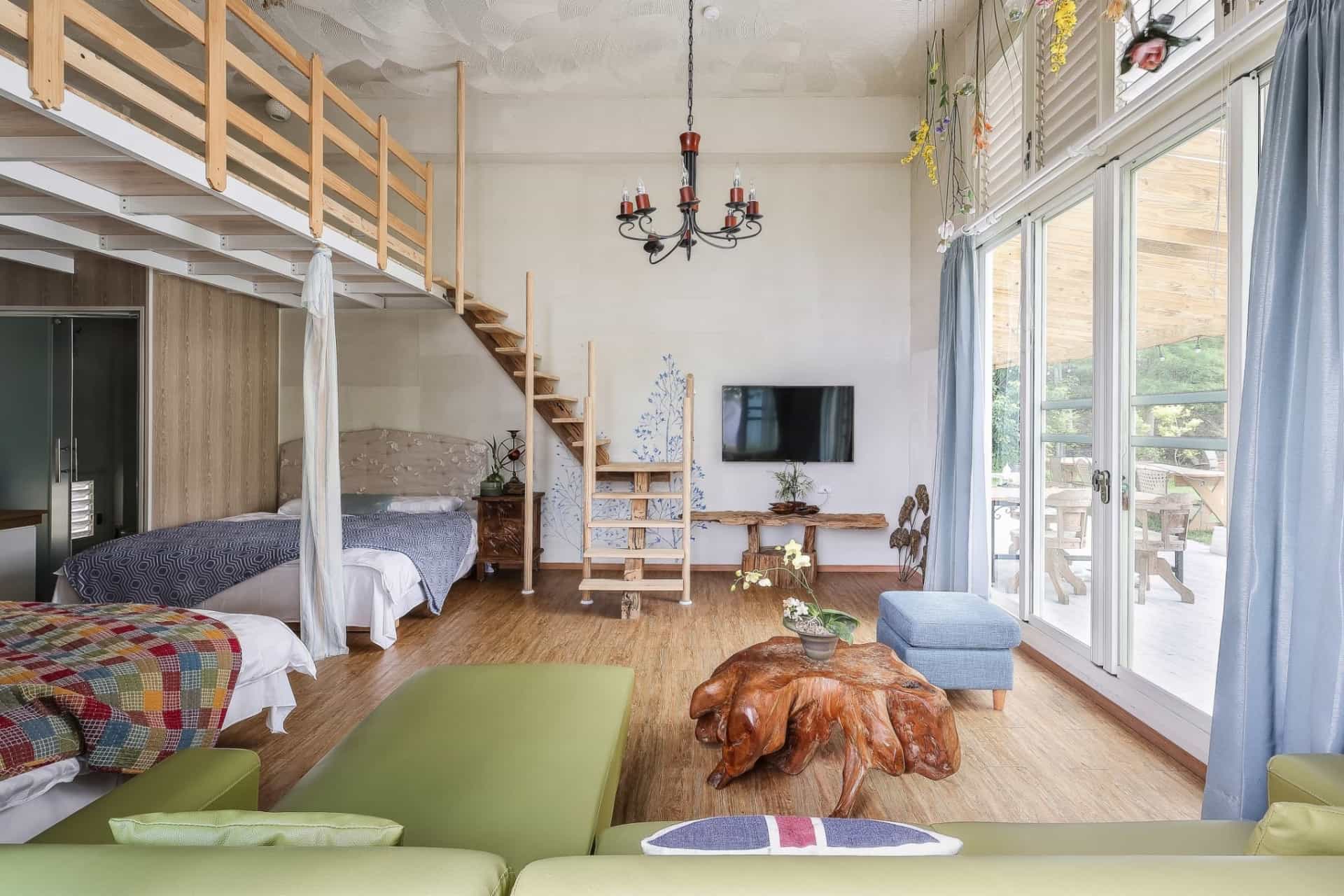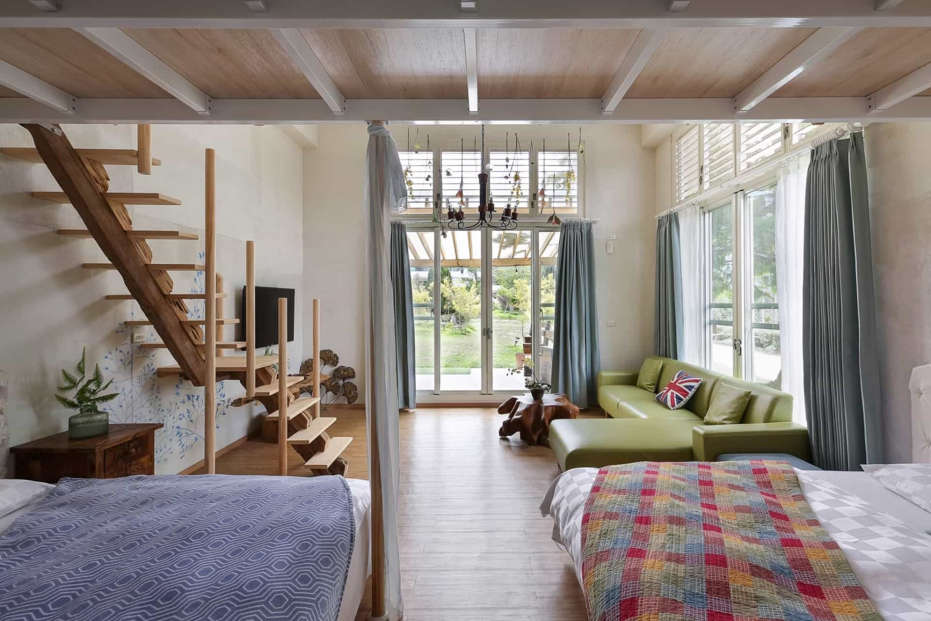 # 綠意四人房適合自己帶小火鍋或茶具,在落羽松下放慢步調,享受山間的清風明月